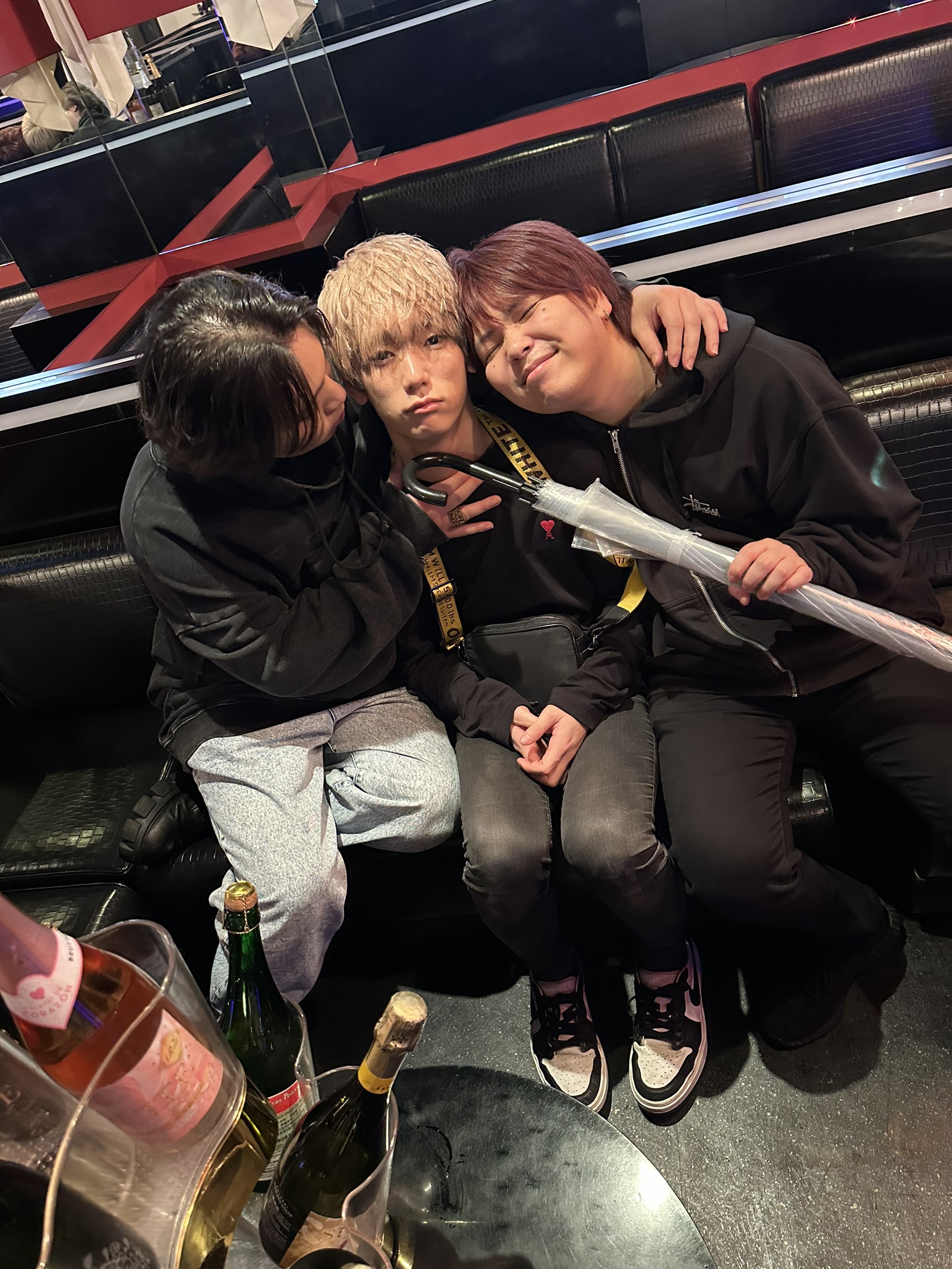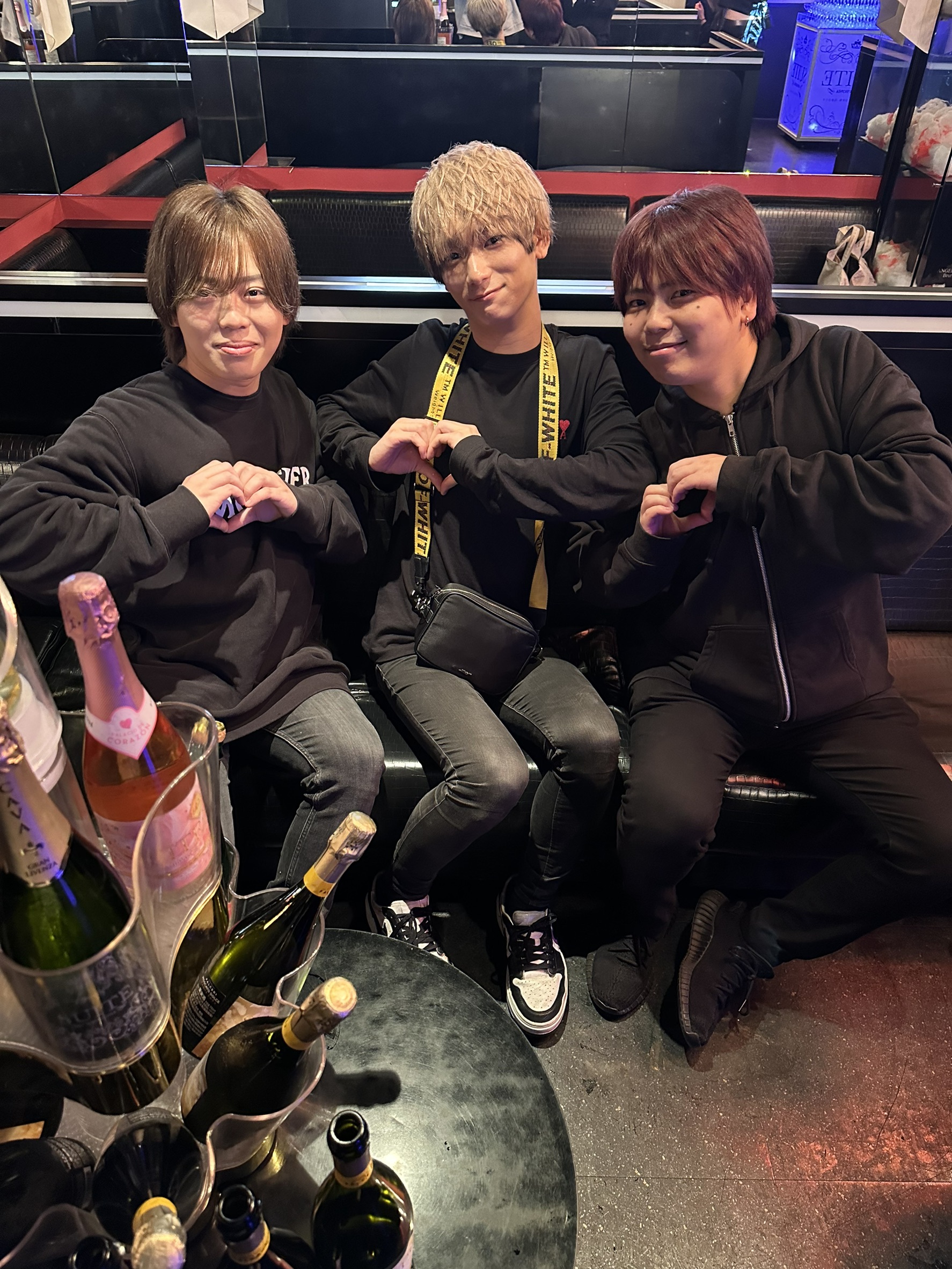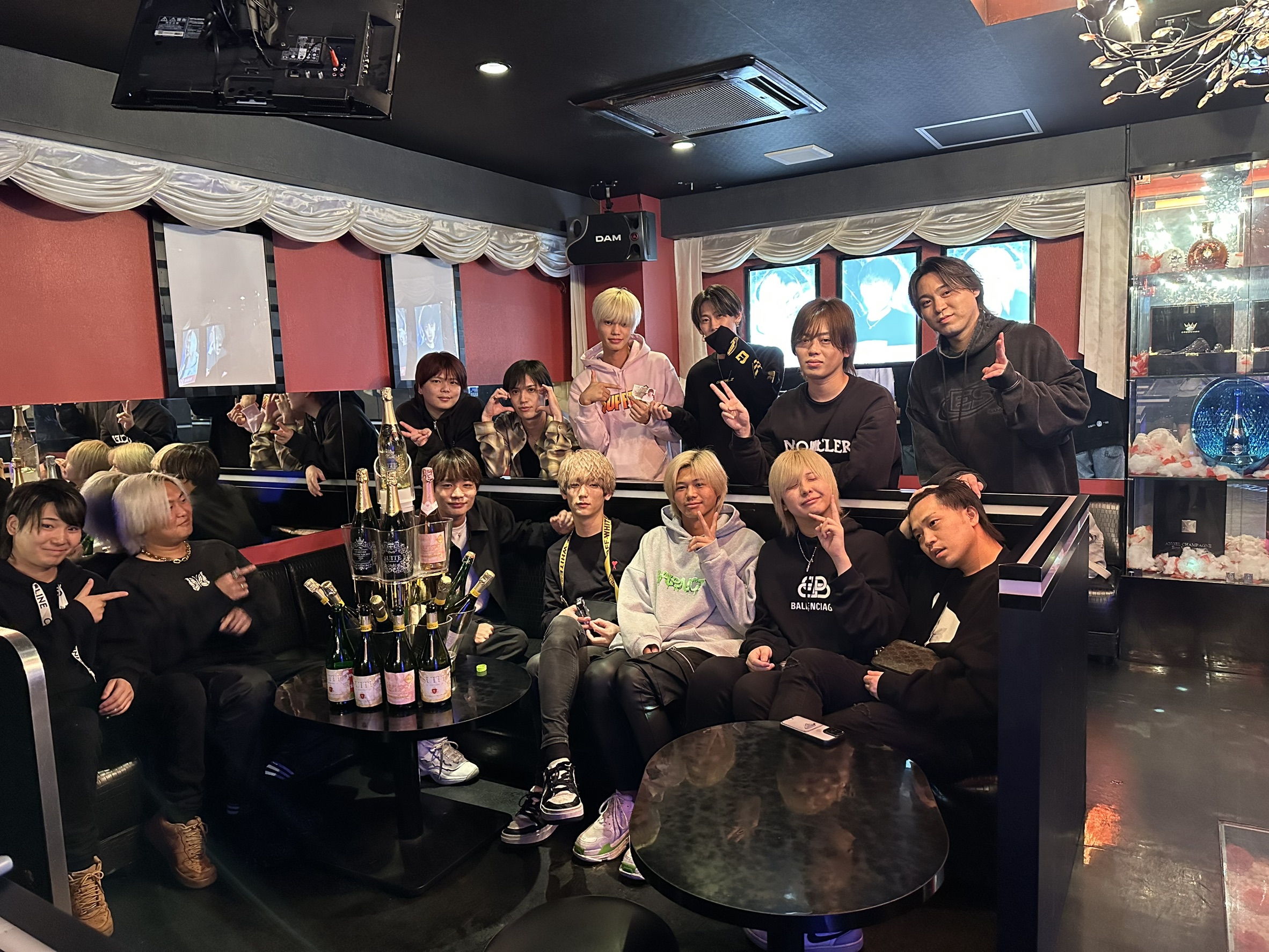 店内にはシャンパンがずらりと並び、仲間たちの笑顔と歓声でいっぱいに🍾